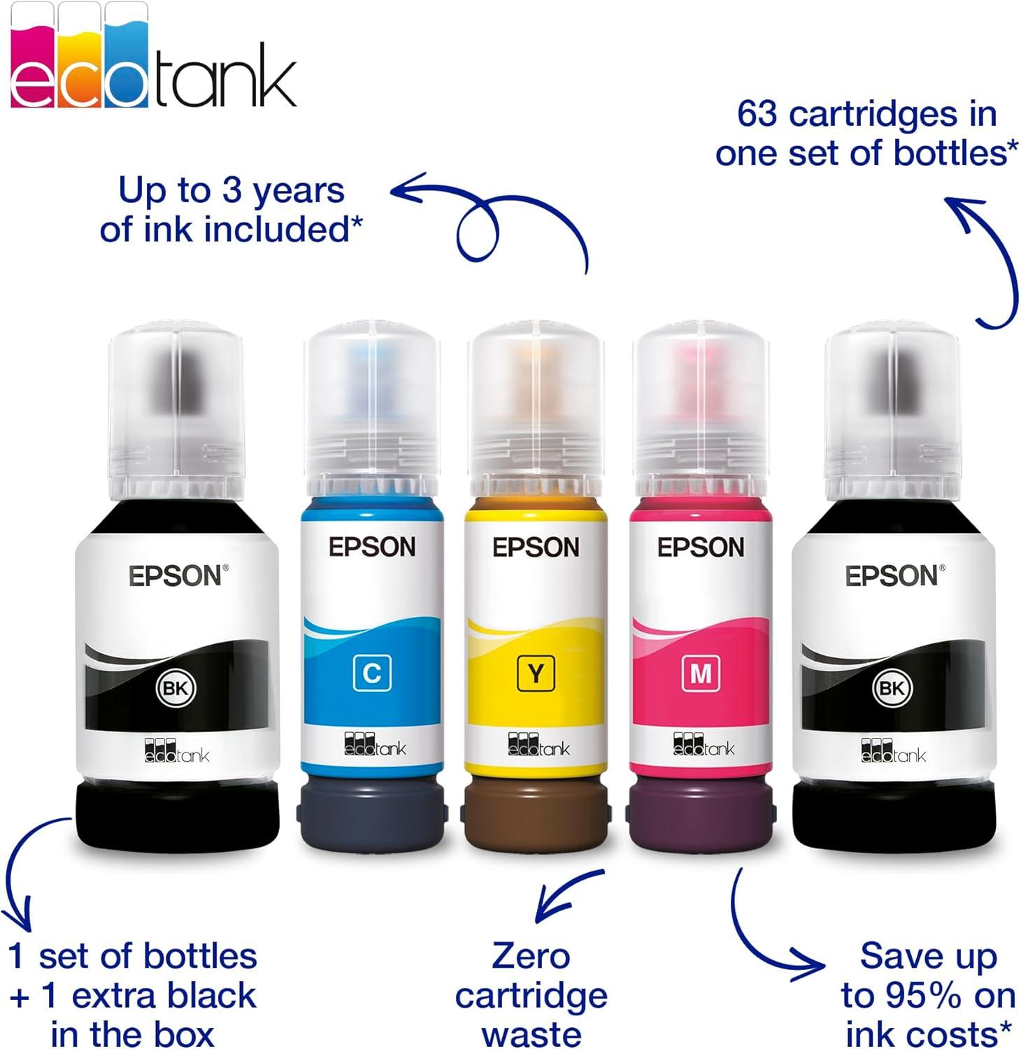 - Ink/toner info from Amazon: SAVE UP TO 95% ON INK COSTS* - Stress-free, convenient printing with up to 63 cartridges worth of ink in one set of bottles*